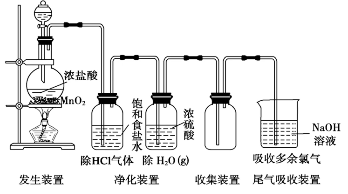 - 分液漏斗:固液加热生成气体所需,用于调节浓盐酸滴入速率